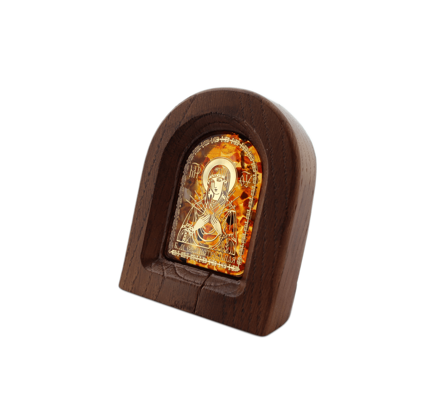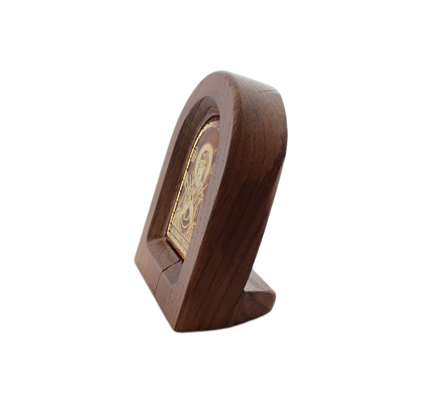Икона в деревянной арочной рамке (киоте) из дуба. Богородица Семистрельная