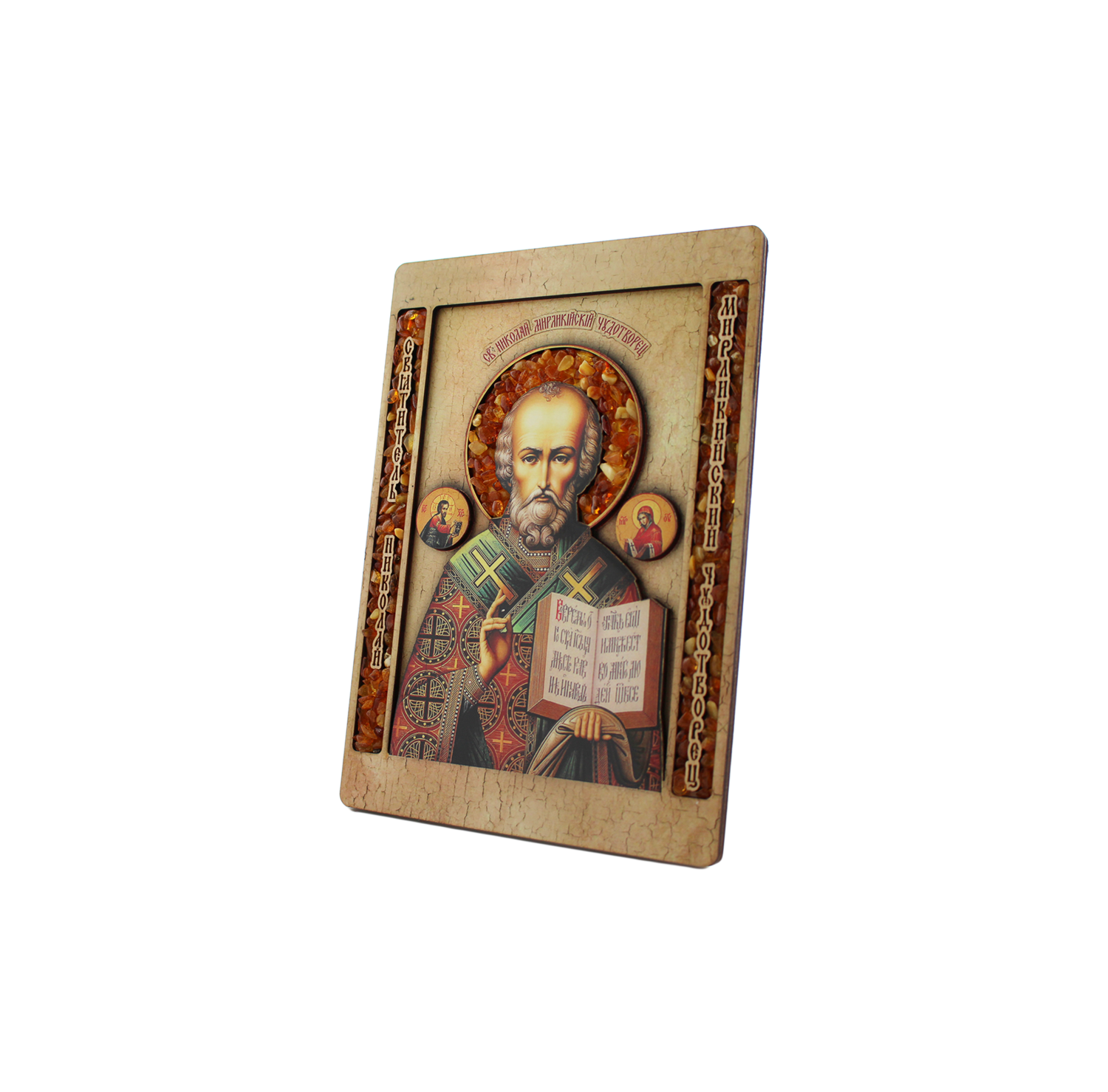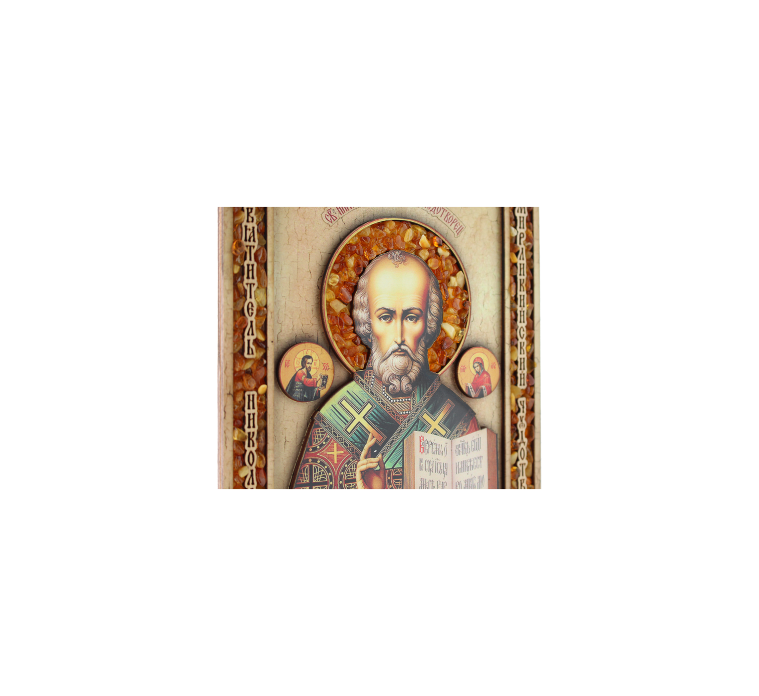 Икона Святителя Николая Чудотворца Мирликийского с янтарем. 3D